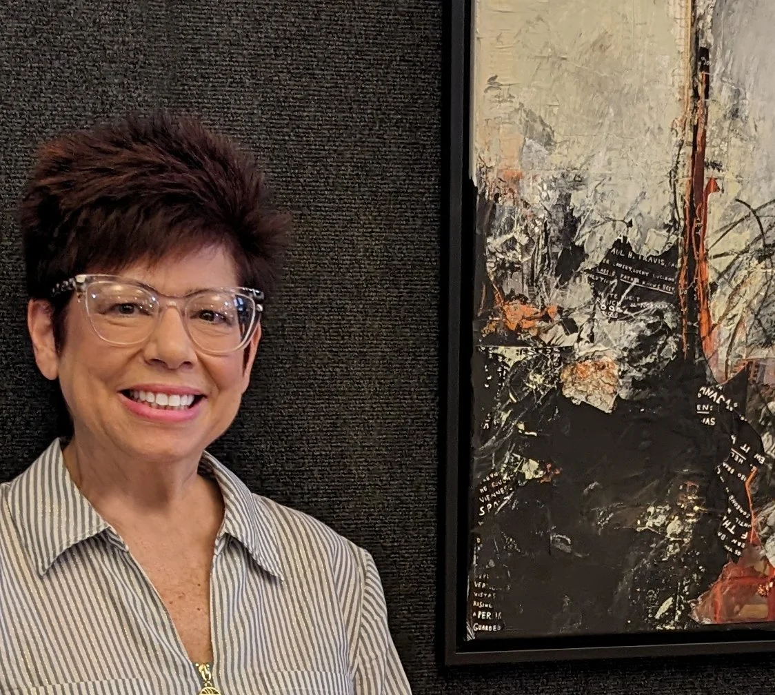She works in a heavily textured mixed-media approach. The tactile sensation of paper, paint, and other elements helps her connect more deeply with the creative process. Her work has been exhibited nationally in the U.S.