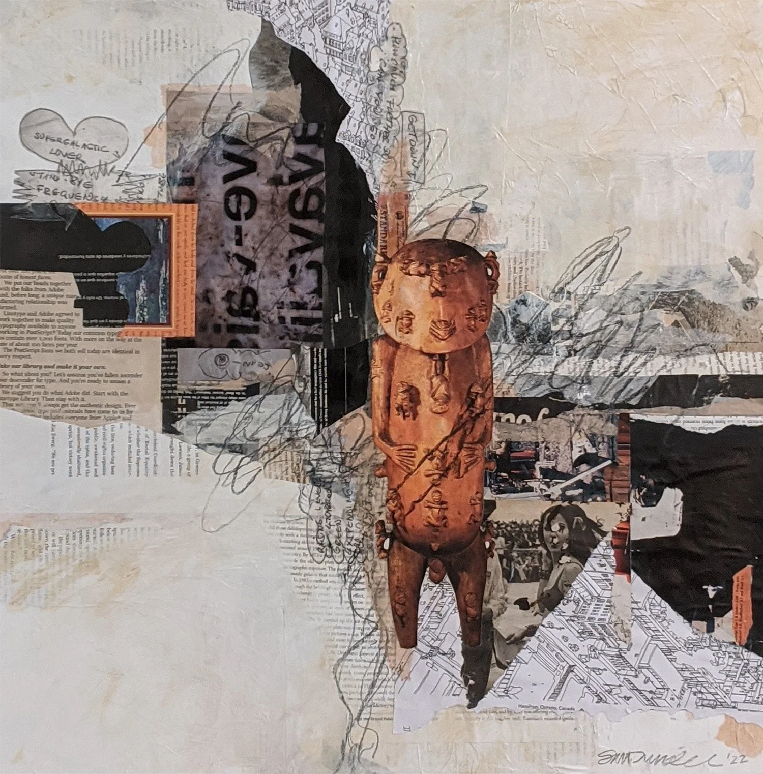 FIGURE REVISITED - Mixed Media/Acrylic/Collage 24"h x 18"w