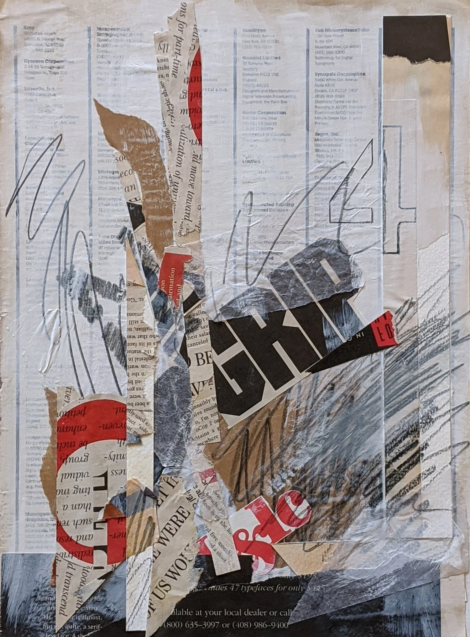 NEWSPRINT NO. 8 - Mixed Media/Collage 15"h x 11"w